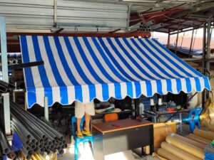 เต็นท์ผ้าใบ ผ้าใบกันสาด ผ้าใบกึ่งสำเร็จรูป โครงกันสาดเมทัลชีท รางน้ำฝน